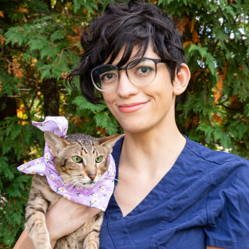 Justice works as one of our Main Receptionists. Justice enjoys working on our Facebook and Emails for the clinic. She loves cats, and cat related things. In her spare time she enjoys spending time with her cats, and knitting. During her work hours, she enjoys spending time with Primo our clinic cat. Justice has taught him to Hi-Five.